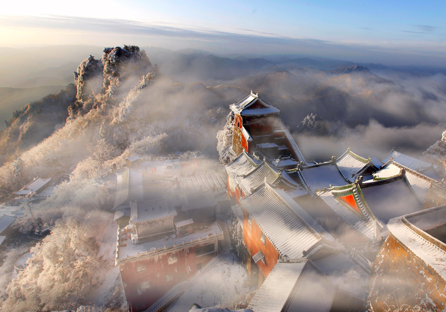 武当山古建筑群始建于唐贞观年间(627- 649年),宋、元时期均有建设。明永乐十年明成祖朱棣为了加强皇权在武当山敕建宫观殿堂,兴建了以金顶为核心的大批道教宫、观、祠、庙,确定了武当山的建筑群格局,形成9 宫、9 观、36 庵堂、72岩庙的古建筑群体系,武当山古建筑群现存古建筑49处。武当山古建筑中的宫阙庙宇集中体现了
