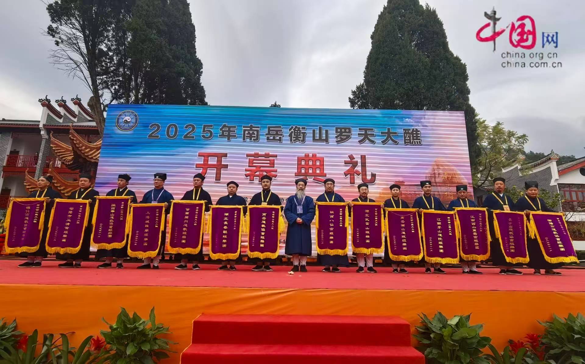 11月18日上午,由中国道教协会主办,湖南省道教协会、衡阳市道教协会协办,南岳道教协会、南岳衡山道院承办的“2025年南岳衡山罗天大醮”在湖南南岳衡山道院隆重开幕。中国道教协会会长李光富道长,湖南省民宗委副主任龙毅,衡阳市委统战部部长刘章宇,衡阳市南岳区委统战部部长沈伟,中国道教协会副会长孟至岭道长、胡诚林道长、陆文荣道长、吴诚真道长、邓信德道长、梁崇雄道长、吴理之道长,中国道教协会咨议委员会副主席、湖南省道教协会名誉会长黄至安道长以及湖南省其他有关部门领导,道教界代表、专家学者及信众嘉宾共聚“道教第三洞天”,共襄盛举。开幕典礼由孟至岭主持。