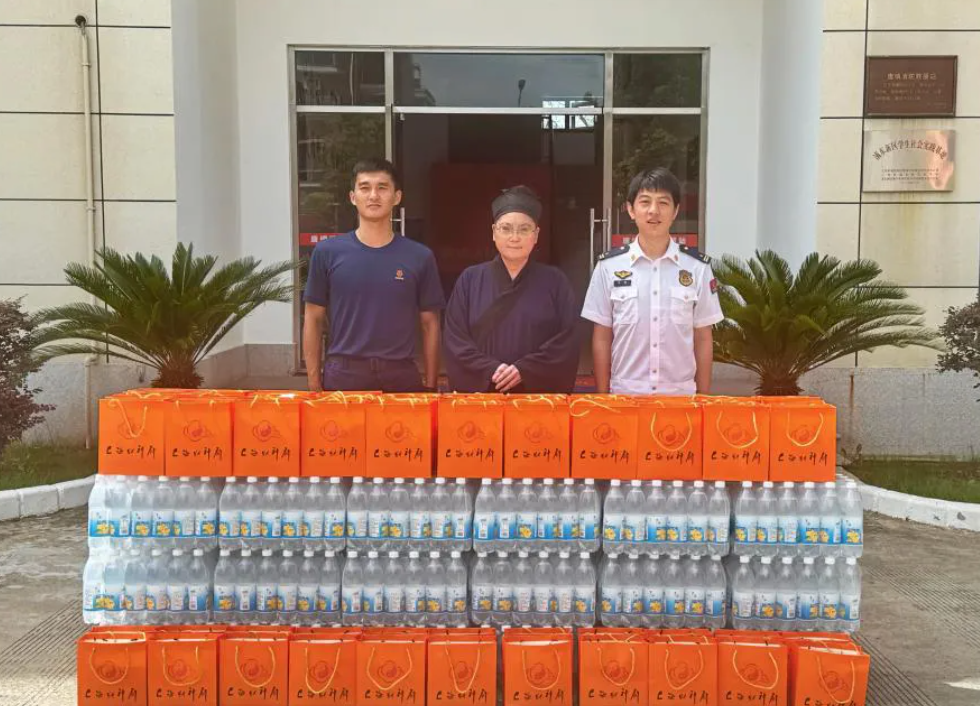 慰问现场,张东英道长一行为消防救援队员们送上精心准备的防暑降温用品,向不畏酷暑、坚守执勤一线的消防指战员致以最崇高的敬意,感谢他们始终扎实工作、默默奉献,为城市安全稳定有序筑牢了安全屏障。